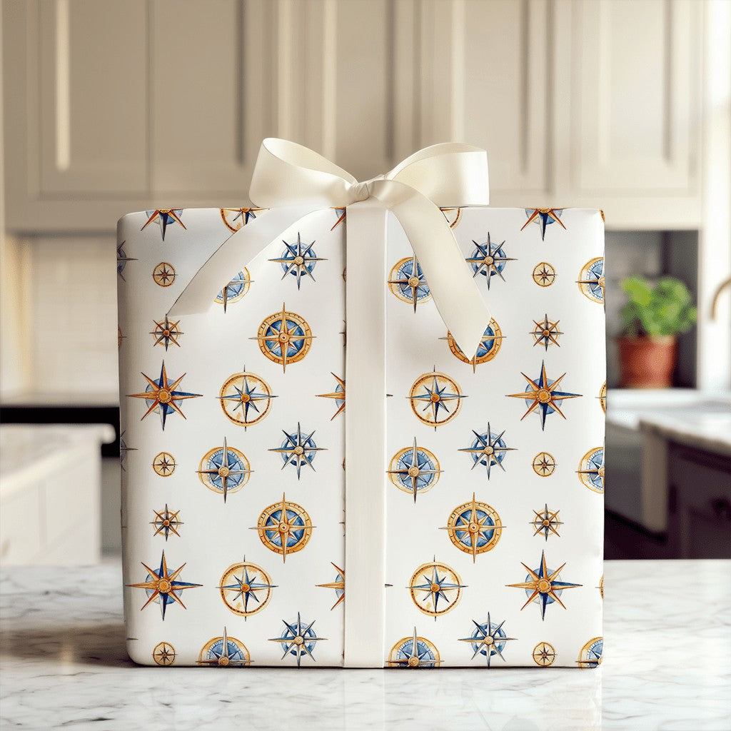 Compass Gold - Gift Wrap for Christmas, Holidays Wrapping Paper, Christmas Wrapping Paper