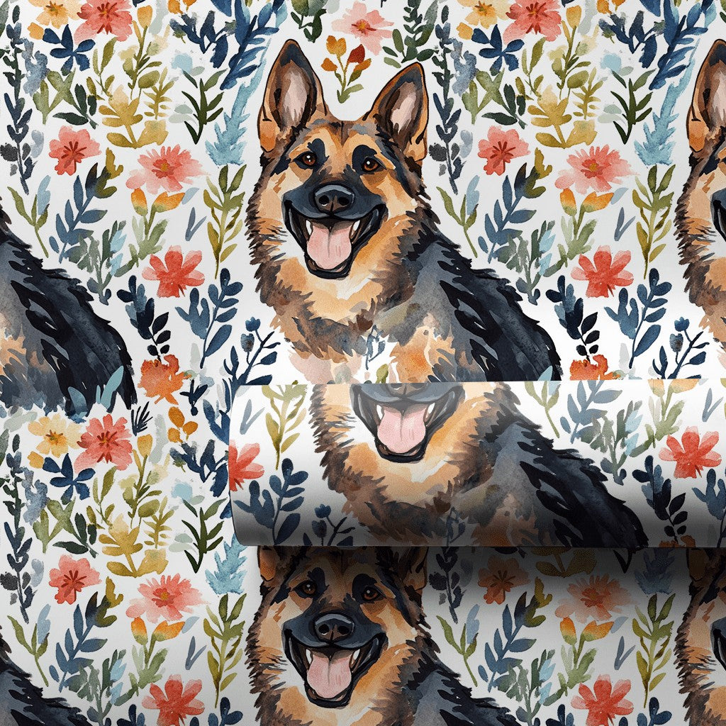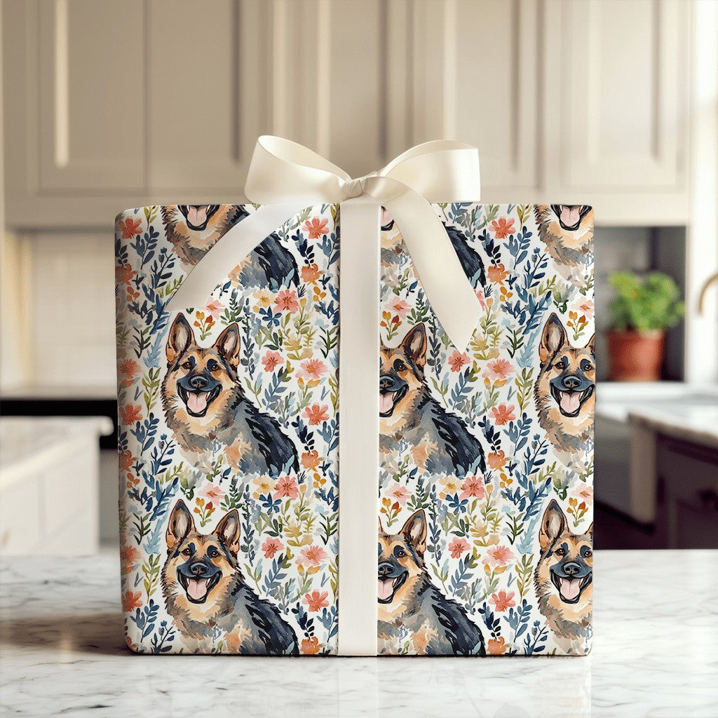 Garden with the German Shepherd - Gift Wrap for Christmas, Holidays Wrapping Paper, Christmas Wrapping Paper